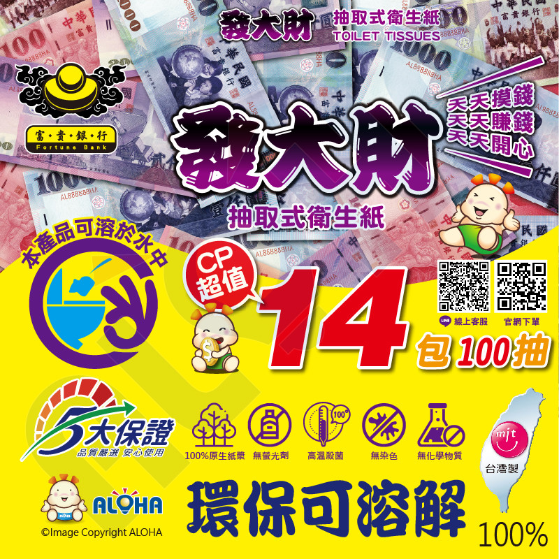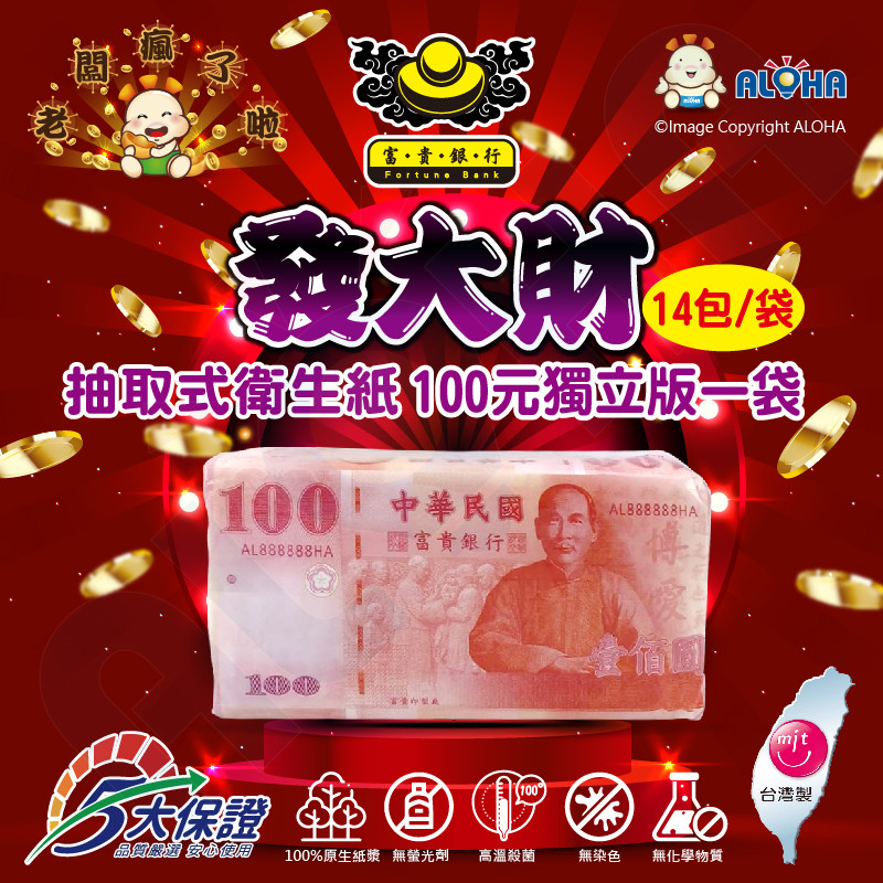 發大財-富貴銀行-新台幣100元衛生紙-84包/箱